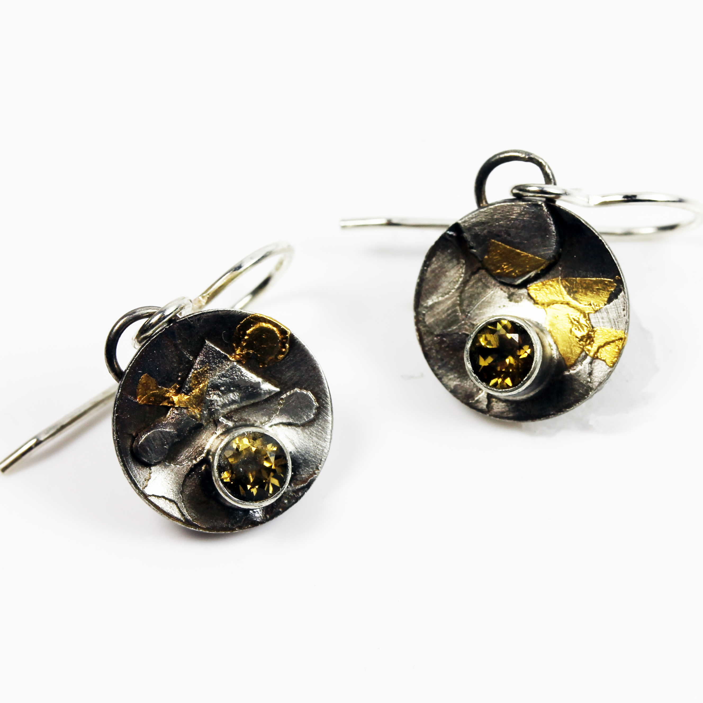 Fused Texture surface with Keum-boo and 4 mm Citron accents; French ear wires